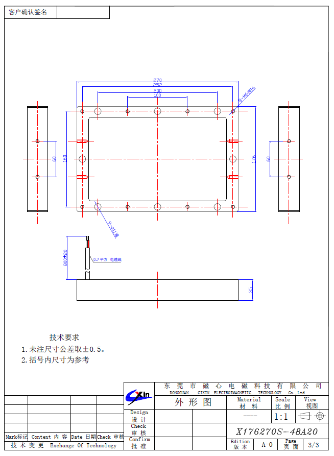 X176270 高精密方形吸盤式電磁鐵采用特殊的設計,可以把線圈產生的磁場均勻的分布在產品的吸合面。所有的零部件采用精加工工差控制到0.05mm以內。磁心科技根據客戶的需要定制有各種規格和各種結構的方形吸盤式電磁鐵,有雙面吸合的方形吸盤式電磁鐵、單線圈方形吸盤式電磁鐵、多線圈方形吸盤式電磁鐵、防水方形吸盤式電磁鐵以及防生產方形吸盤式電磁